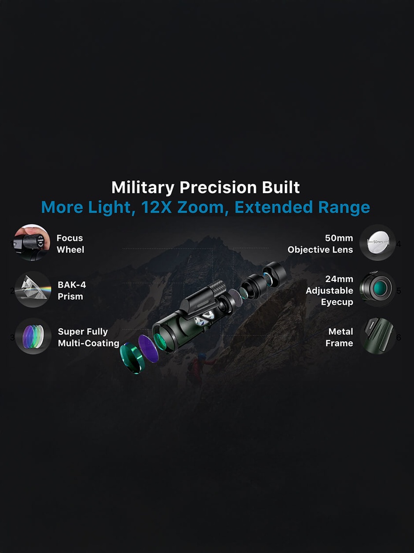 Capture the rare, hidden beauty in nature and wildlife with bright, high-definition pictures - from miles away through the military prism technology. Built for outdoor & tactical enthusiasts, this is a must have for nature lovers, hunters, bird watchers, & hikers alike!