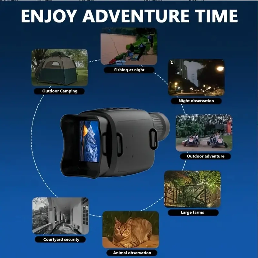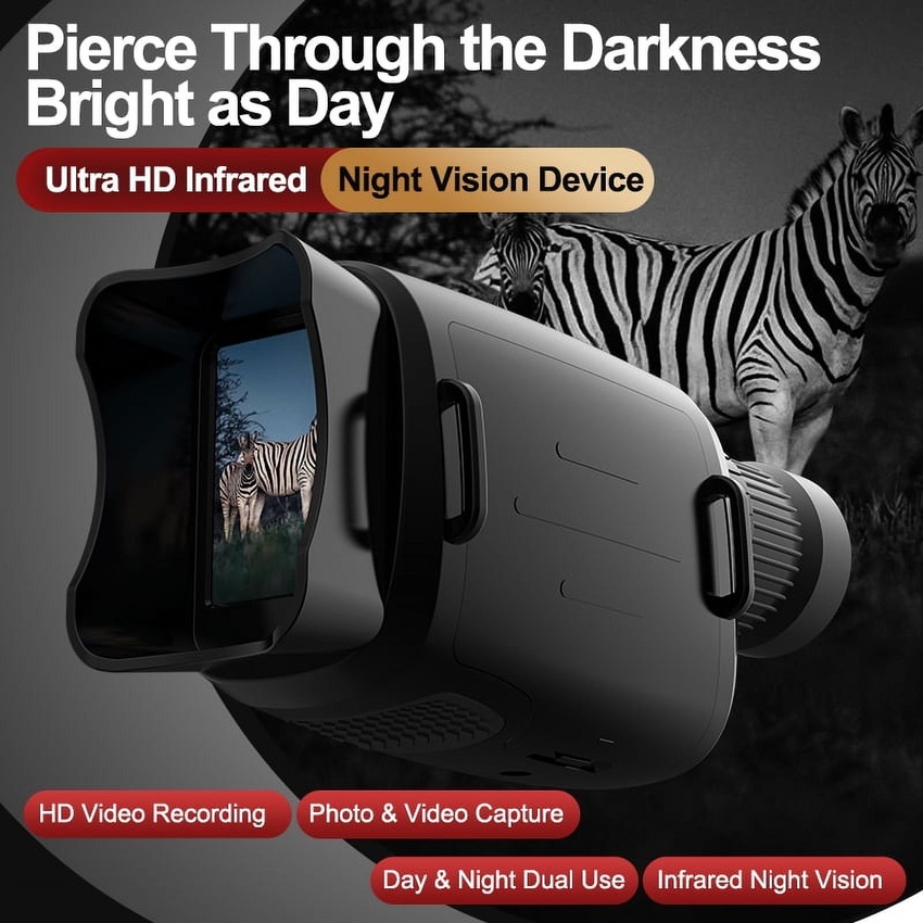 This night-vision monocular can be used to observe objects in the dark and low light situation. The viewing distance in the low light environment will be 3.0 meters to unlimitedness, 300~1000 meters viewing distance in the dark environment. Suitable for outdoor traveling, huntings, animal observe and so on, come on and enjoy it, it will not let you down.